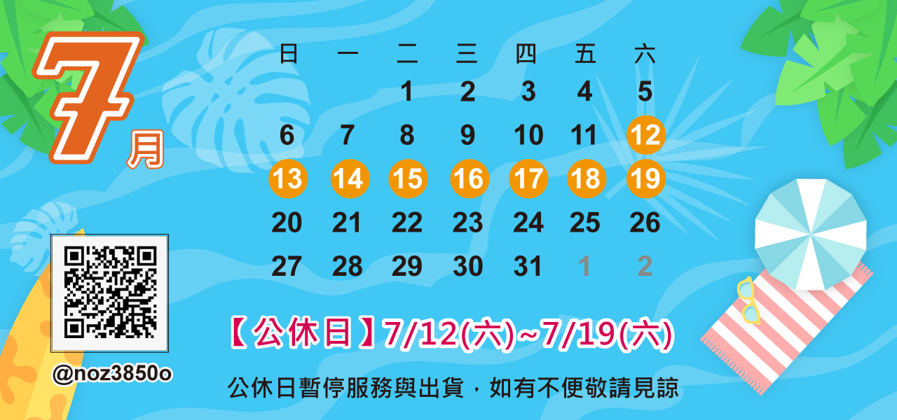 [公告] 2025年7月份公休日